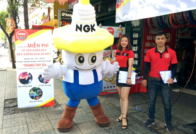 NGK specialists and Sparky Boy have been present since 7 am at Trung Tay Ga Professional Motorbike Repair and Maintenance Center.
