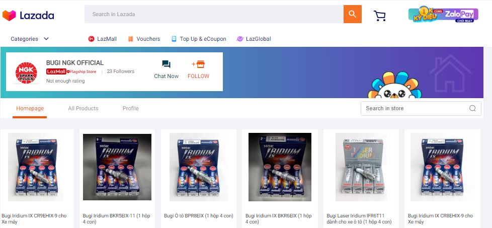SPARK PLUGS NGK OFFICIAL - Registered booth of NGK spark plugs on Lazada Vietnam