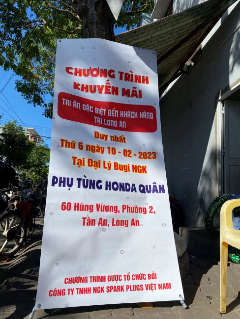 Ngày 10/02/2023 vừa qua, NGK Việt Nam có dịp tri ân đặc biệt tới khách hàng tại Đại lý Bugi NGK – Phụ tùng Honda Quân (60 Hùng Vương, phường 2, Tân An, Long An) với sự đón nhận của đông đảo khách hàng.