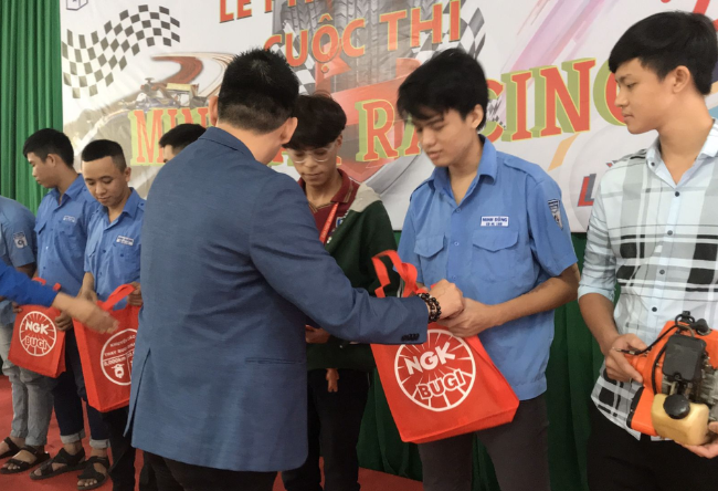 Sau bài phát biểu, đại điện Công ty Bugi NGK Việt Nam còn trao tặng một số phần quà cho các đội dự thi để khuyến khích các em có thêm động lực thi đấu.
