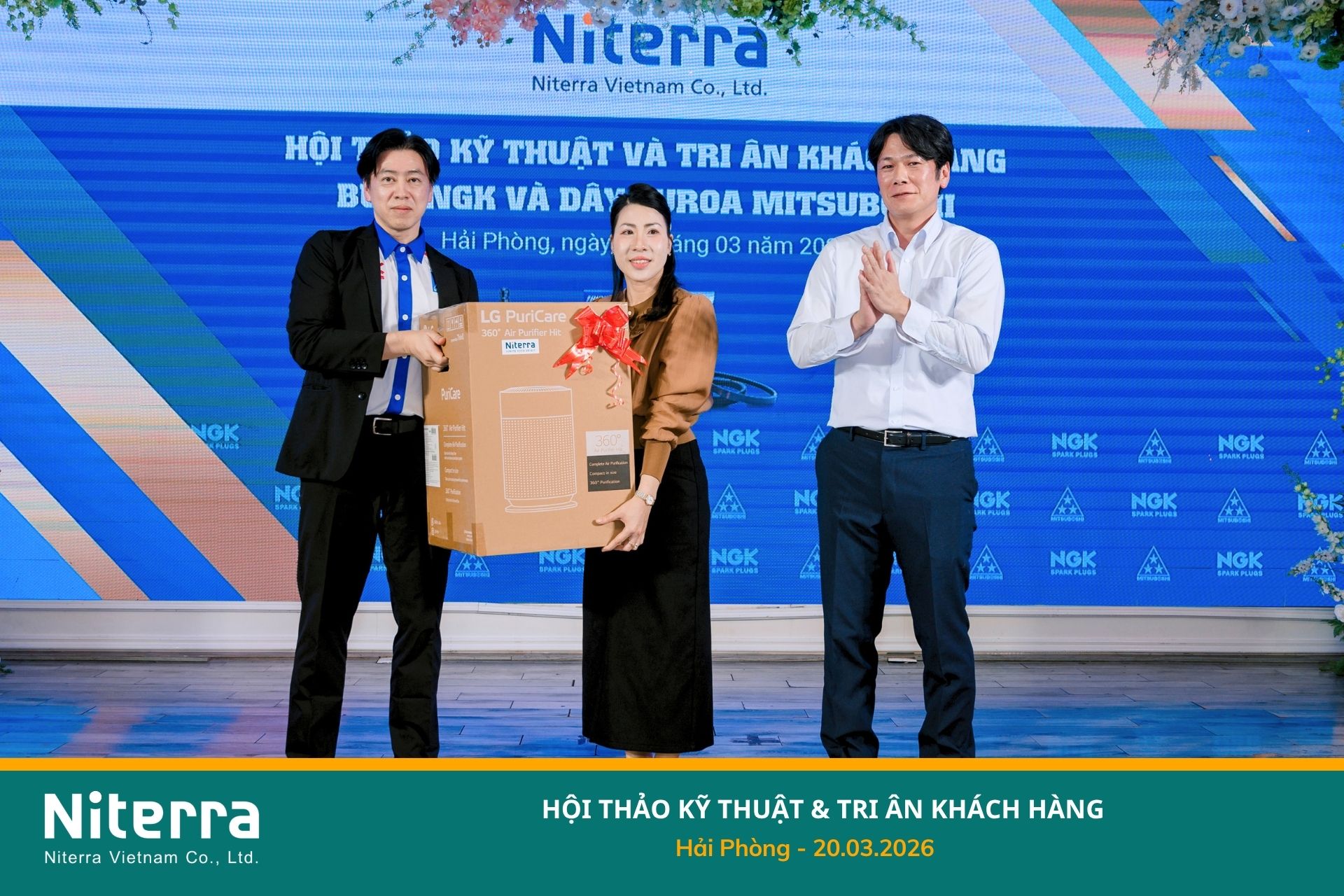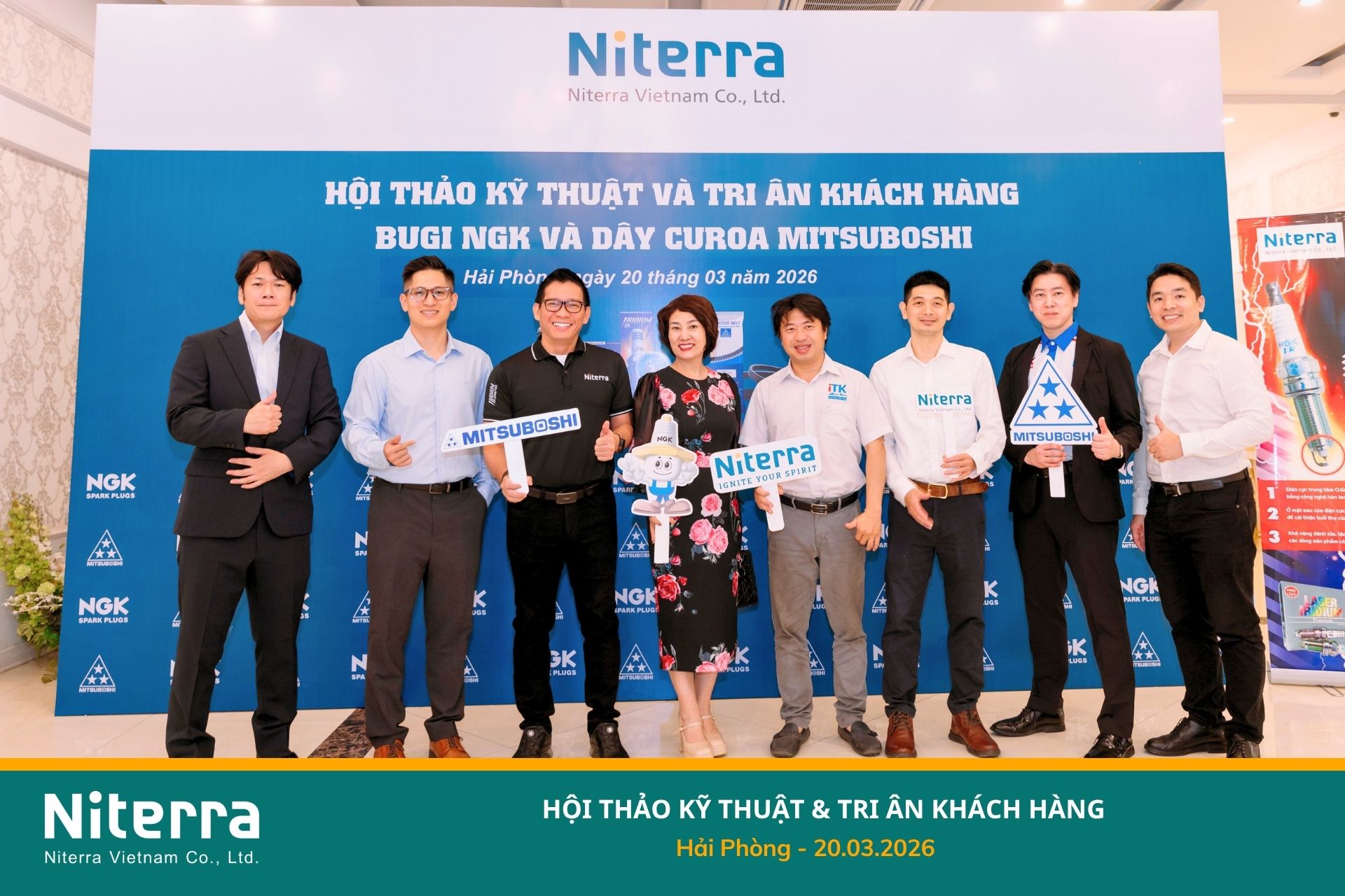 Ngày 20/03/2026 vừa qua, ngọn lửa nhiệt huyết của Niterra đã chính thức được thắp lên tại “Thành phố Cảng” Hải Phòng, trong khuôn khổ chuỗi sự kiện “Hội thảo Kỹ thuật & Tri ân Khách hàng”. Buổi hội thảo đã diễn ra trong không khí vô cùng sôi động với sự góp mặt của NPP Vũ Gia, Đại lý B.O.C và hơn 130 khách hàng thân thiết, những người đã góp phần quan trọng tạo nên sức mạnh của Niterra Việt Nam hiện nay.