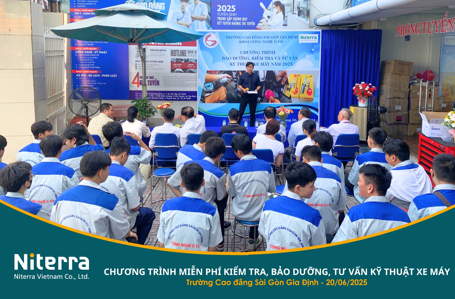Đến với chương trình, Niterra Việt Nam tài trợ bugi NGK xe máy chính hãng và gửi tặng nhiều phần quà ý nghĩa dành cho cán bộ, giảng viên, nhân viên và sinh viên tham gia bảo dưỡng xe.