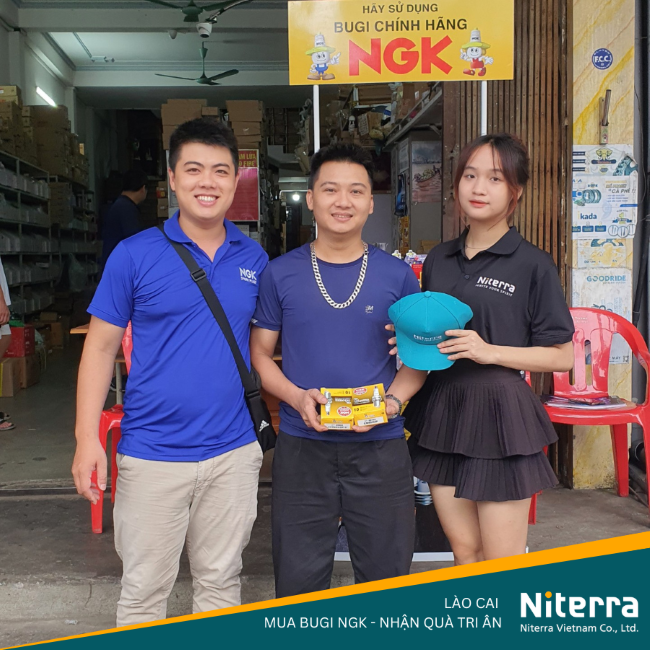 Ngày 09/06/2023 vừa qua, Niterra Việt Nam tổ chức chương trình: Mua Bugi NGK, nhận quà tri ân tại Đại lý Bugi NGK chính hãng Hữu Đang. Địa chỉ: Số 334 đường Hoàng Liên, phường Kim Tân, Thành phố Lào Cai.