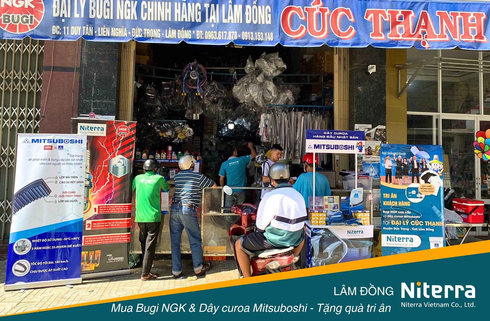 Vào ngày 14/06/2024, Niterra Việt Nam triển khai Chương trình Tri ân khách hàng đặc biệt, duy nhất trong ngày tại Đại lý Cúc Thạnh, huyện Đức Trọng, tỉnh Lâm Đồng, dành cho khách hàng mua bugi NGK cao cấp (bạch kim, iridium) và dây curoa Mitsuboshi.