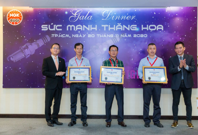 Điểm nhấn trong sự kiện là phần vinh danh và trao bằng chứng nhận cho các cửa hàng chính hãng của Bugi NGK. Chương trình dành lời cảm ơn chân thành đến các nhà phân phối lớn đã dành thời gian đến chia vui cùng các đại lý và sát cánh cùng Bugi NGK. Bugi NGK cũng vinh dự công bố và trao thưởng cho những đại lý đạt thành tích bán hàng xuất sắc nhất năm 2020.