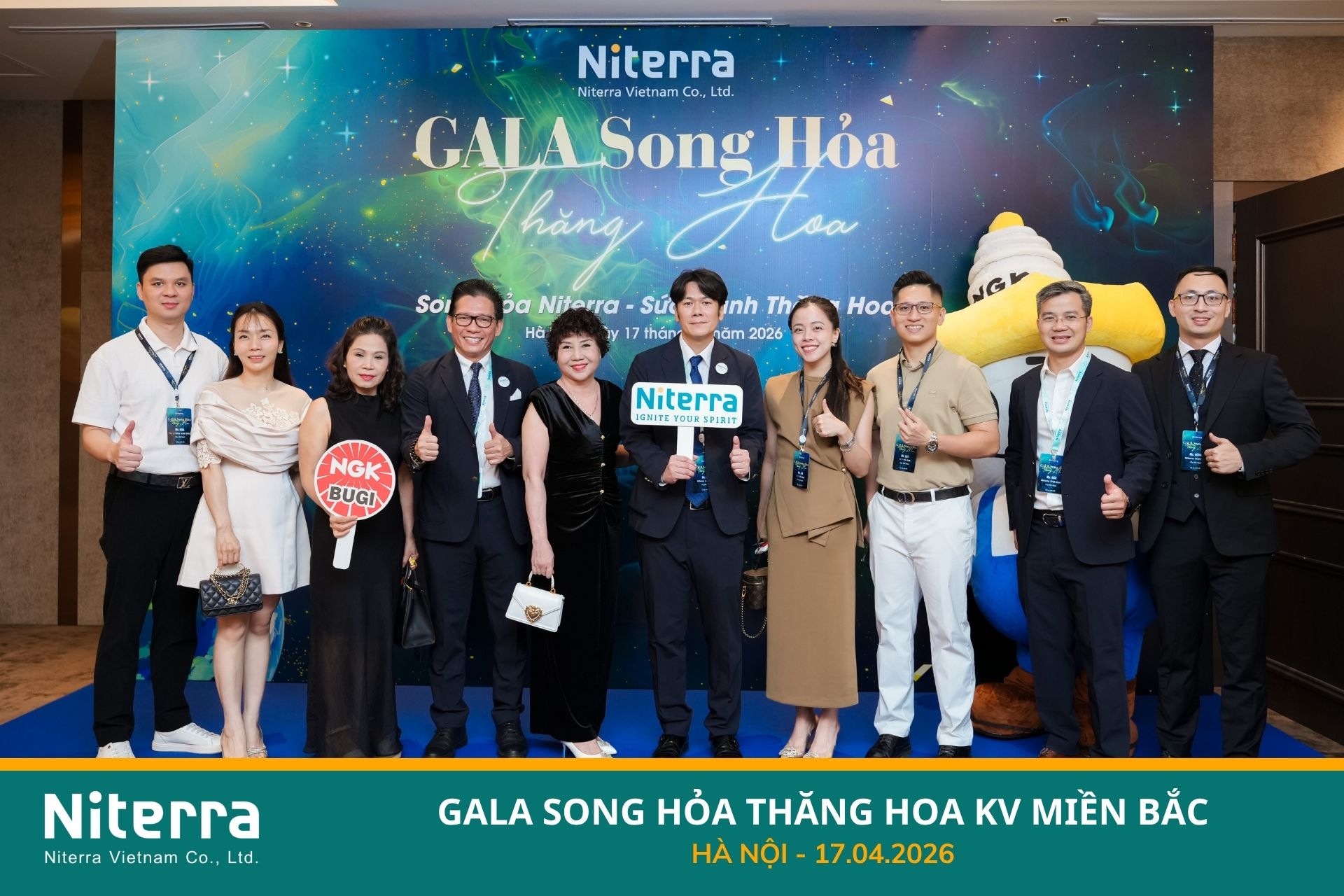 Tất cả những khoảnh khắc tại đêm tiệc sẽ không thể diễn ra nếu không có sự tham gia của các Nhà phân phối và Đại lý. Một lần nữa, Niterra Việt Nam xin gửi lời tri ân sâu sắc nhất đến toàn thể Quý khách hàng đã đến tham dự và đã là một nửa "Song Hỏa" hoàn hảo, cùng chúng tôi tạo nên một đêm đáng nhớ. Hãy cùng nhau giữ lửa và tiếp tục rực cháy trên hành trình thăng hoa sắp tới nhé.