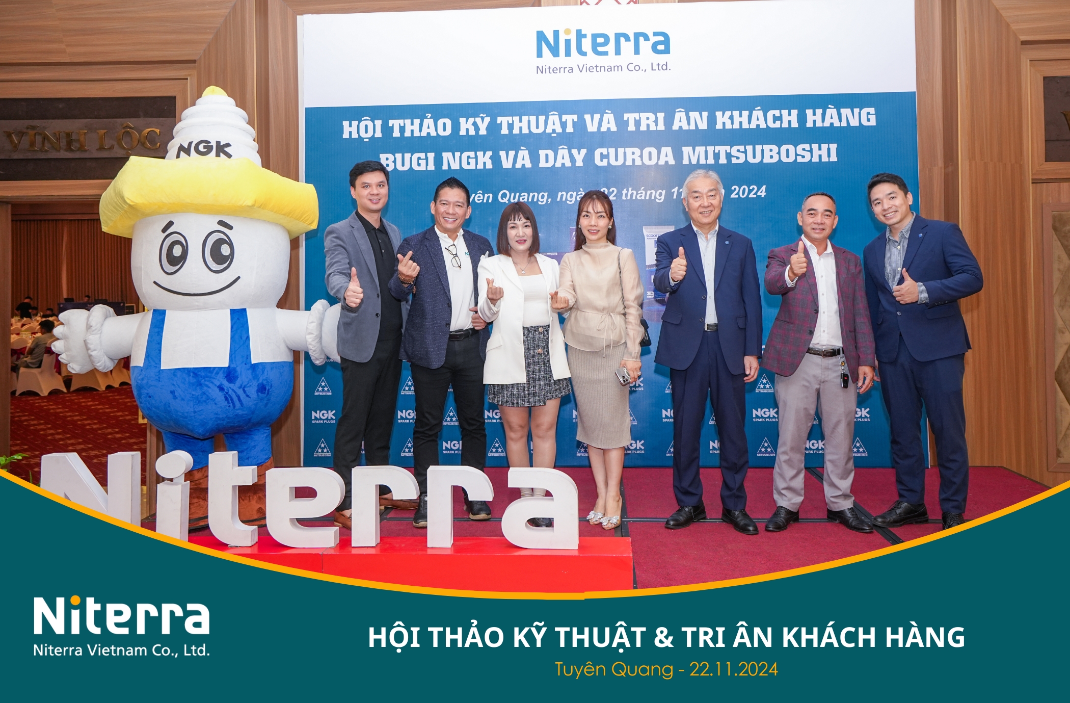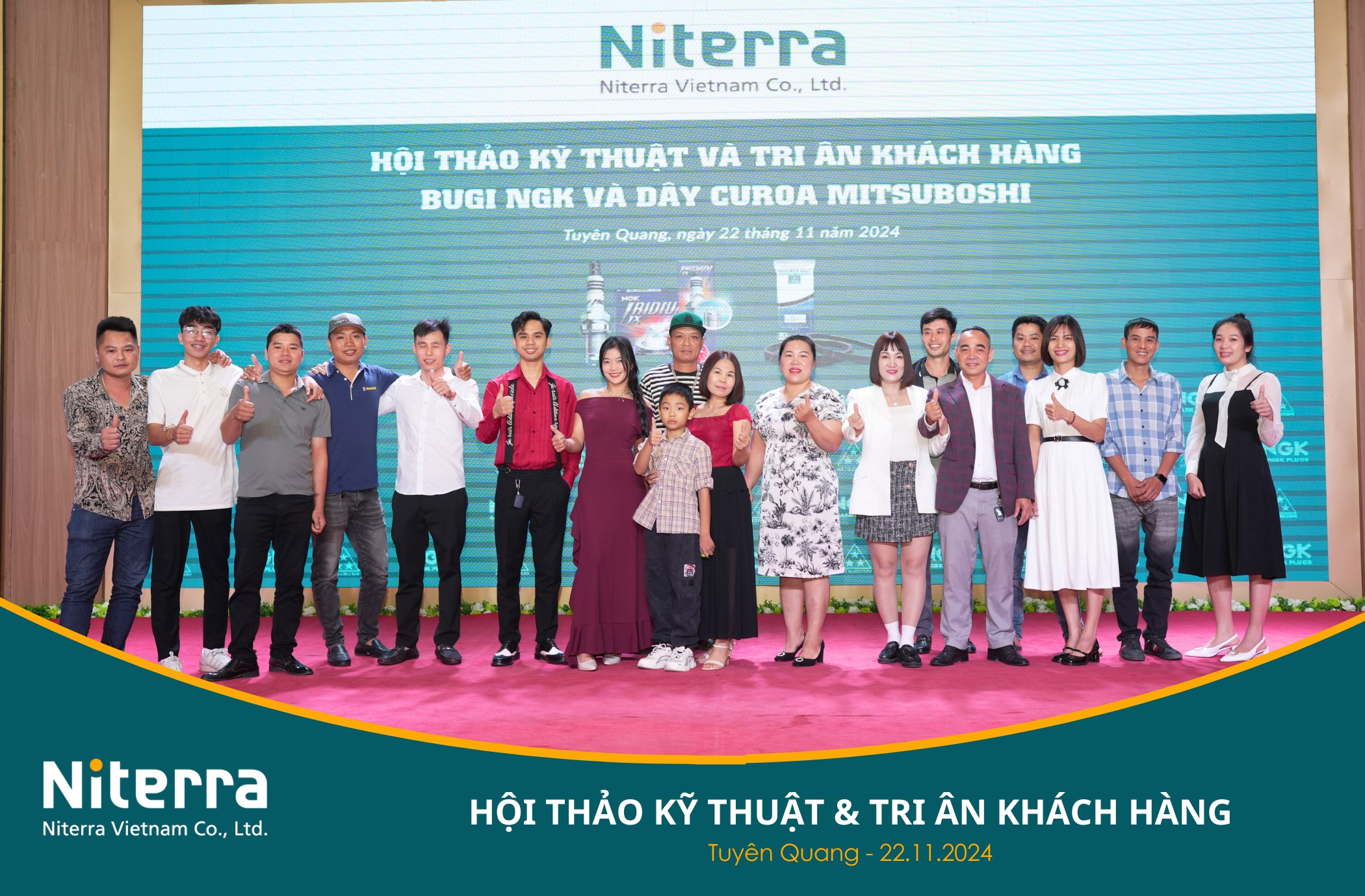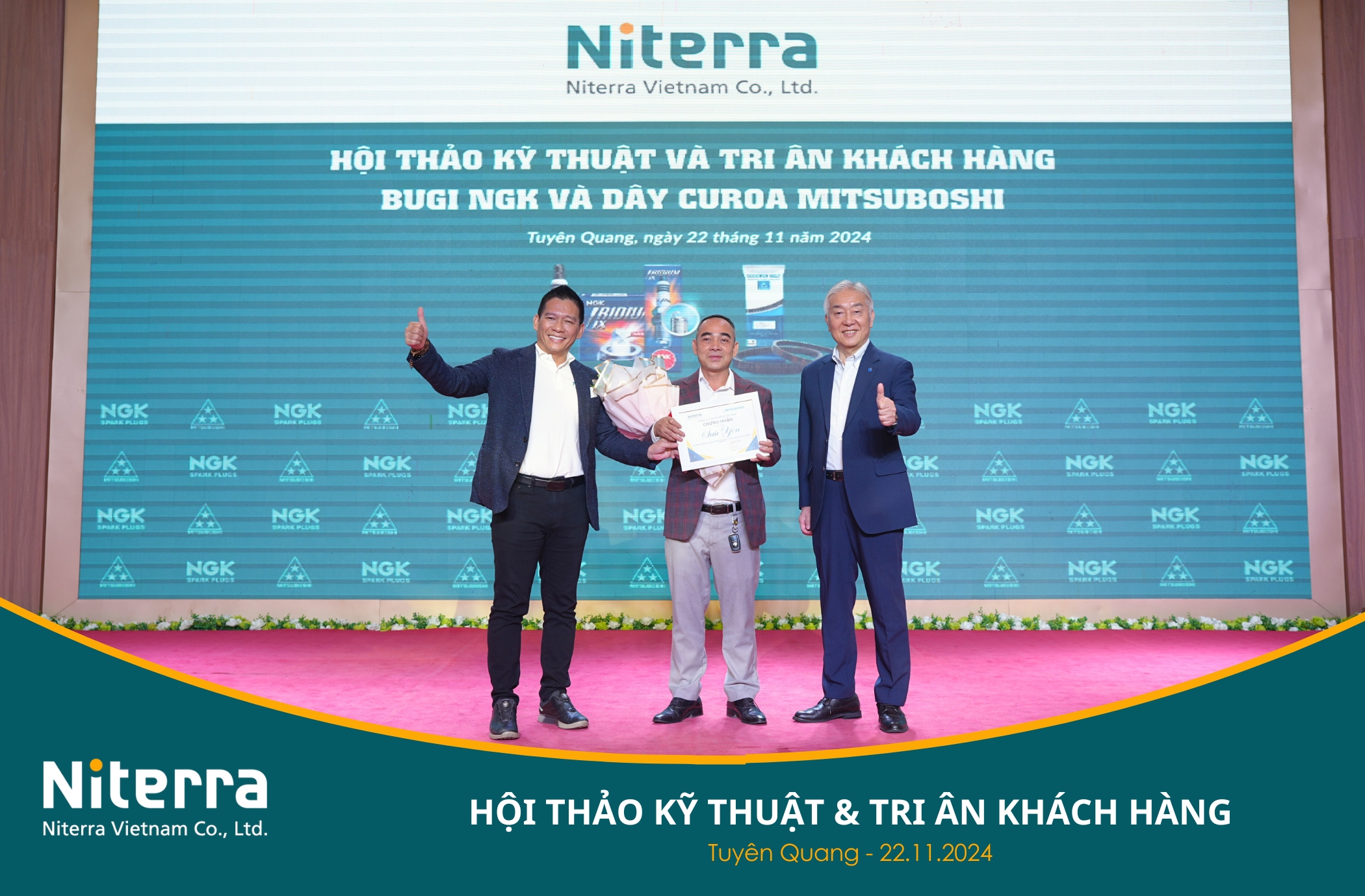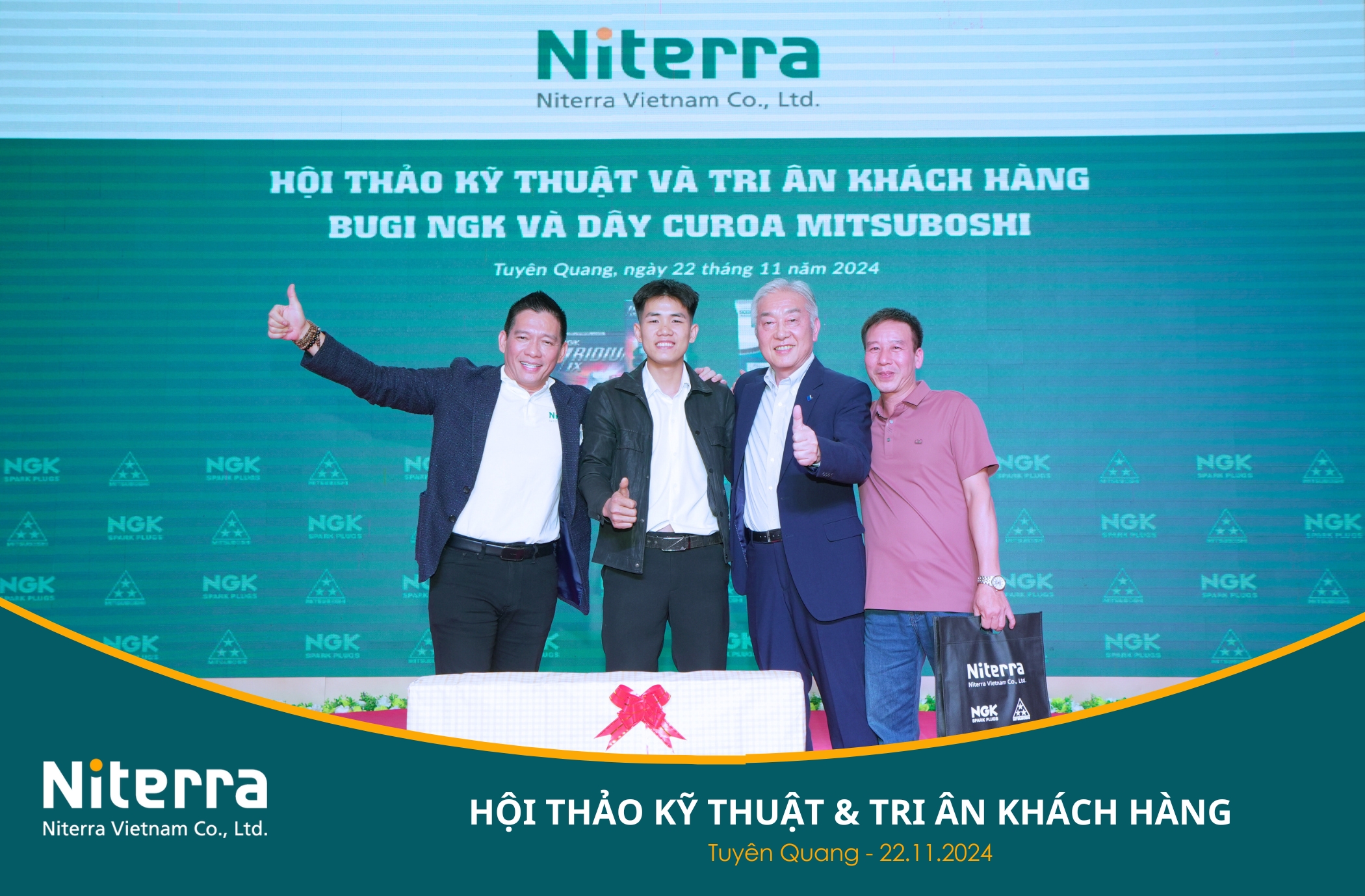 Chương trình do Công ty Niterra Việt Nam tổ chức, cùng sự đồng hành của Công ty Mitsuboshi Belting Việt Nam, Nhà phân phối Hoa Anh Đào và đặc biệt là Đại lý Sửu Yên – đơn vị trực tiếp cung cấp Bugi NGK và Dây curoa Mitsuboshi chính hãng tại Tỉnh Tuyên Quang.
