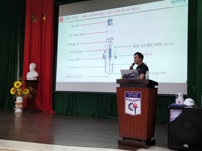 Tại hội thảo, Chuyên viên Niterra Việt Nam giới thiệu đôi nét về công ty, chia sẻ các kiến thức kỹ thuật chuyên ngành giúp cho các đội tham dự trang bị thêm kiến thức để bước vào cuộc thi với phong độ tốt nhất. Niterra Việt Nam cũng đón nhận ý kiến và giải đáp thắc mắc của các bạn sinh viên qua phần Hỏi & Đáp khiến không khí tại buổi hội thảo diễn ra rất sôi nổi. Niterra Việt Nam gửi tặng các bạn sinh viên có câu hỏi và ý kiến đóng góp phần quà như lời cảm ơn.