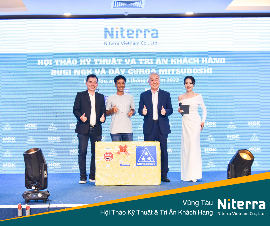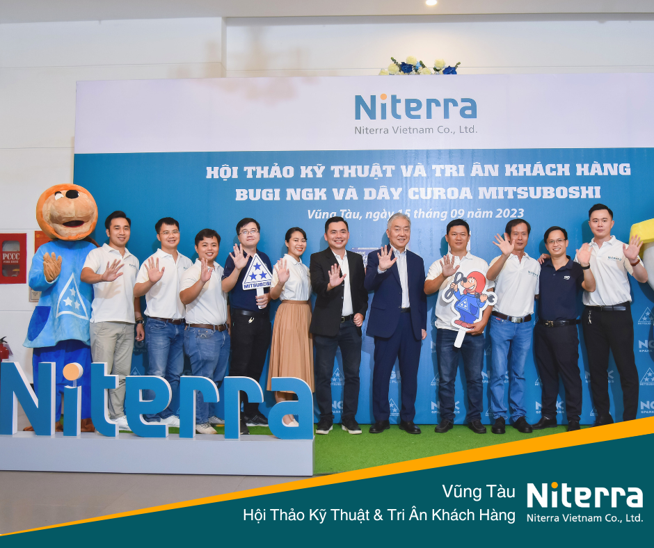 Ngày 15/09/2023 vừa qua, Niterra Việt Nam đã có mặt tại thành phố Vũng Tàu để tổ chức hội thảo kỹ thuật cũng như Tri ân khách hàng về bugi NGK và dây curoa Mitsuboshi. Hội thảo có sự góp mặt của đại diện đại lý chính hãng Linh Nhật, nhà phân phối Uyên Khang cùng với 200 khách hàng thân thiết của Niterra tại Vũng Tàu.