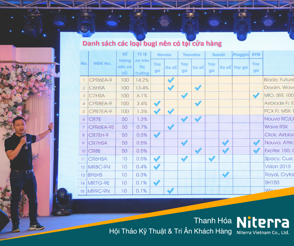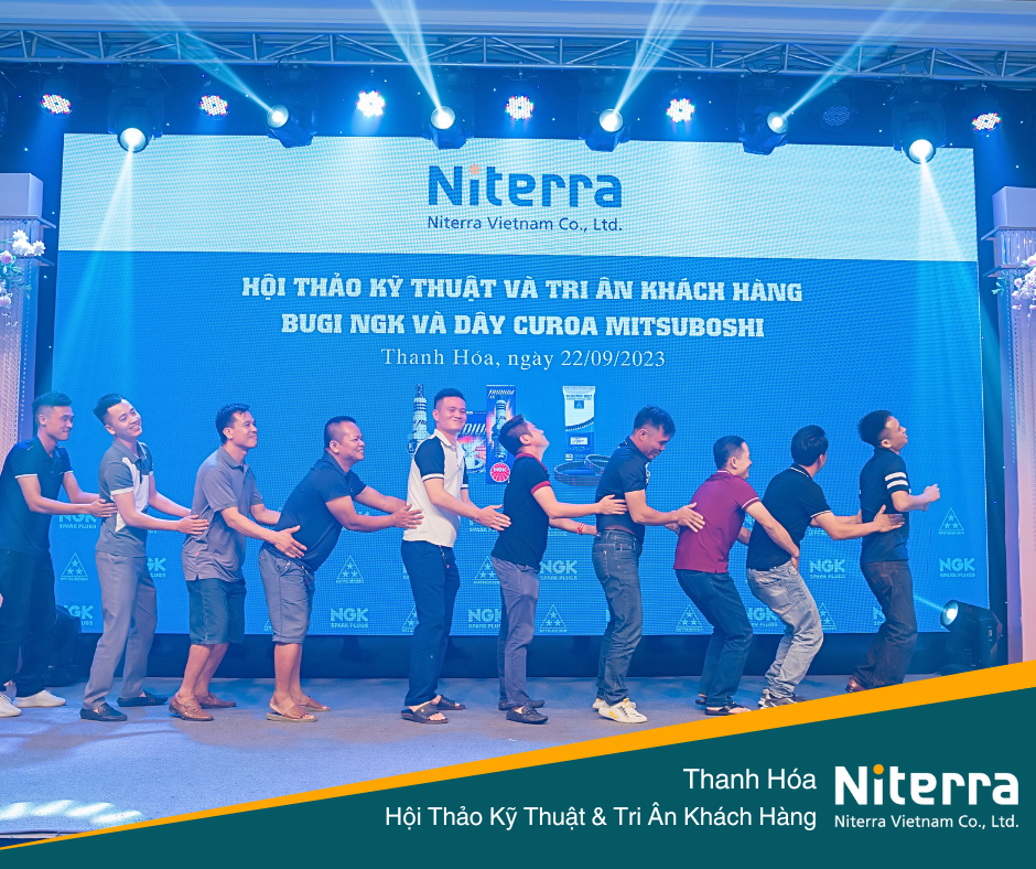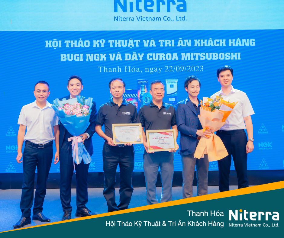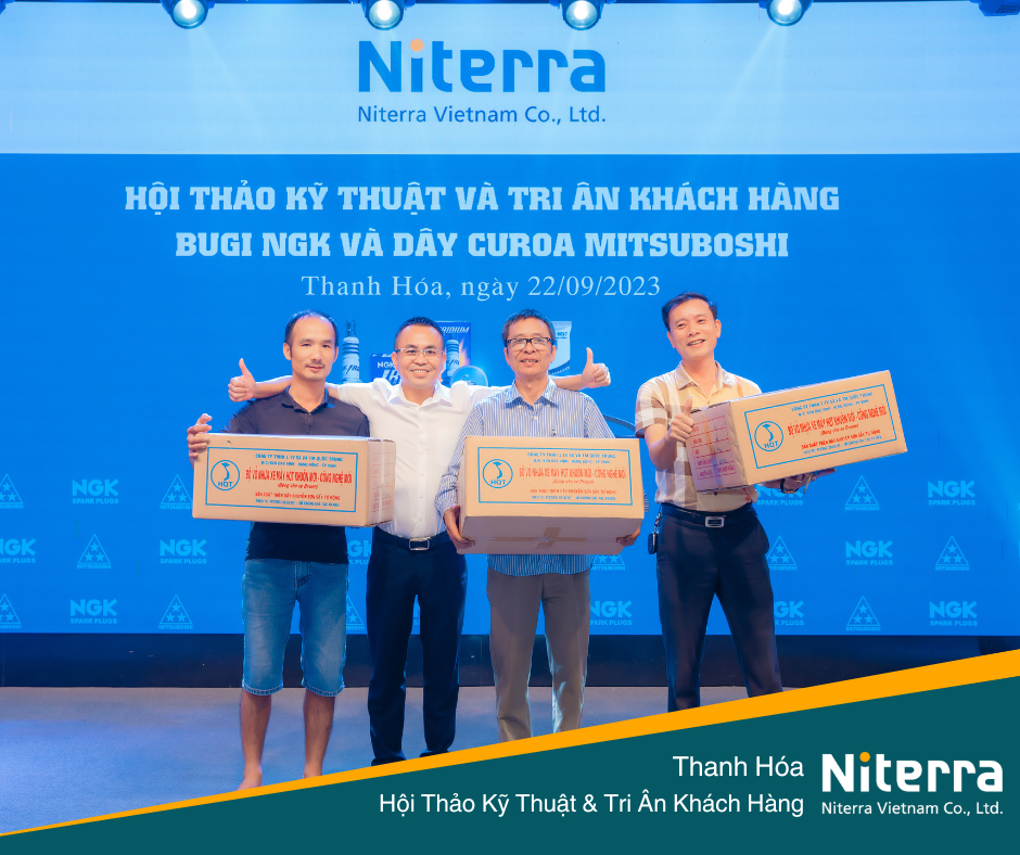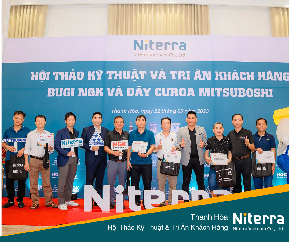 Ngày 22/09/2023 vừa qua, Niterra Việt Nam đã có mặt tại Thanh Hóa để tổ chức hội thảo kỹ thuật cũng như Tri ân khách hàng về bugi NGK và dây curoa Mitsuboshi. Hội thảo đã diễn ra tốt đẹp với sự hiện diện của nhiều cửa hàng cũng như khách hàng thân thiết của Niterra.