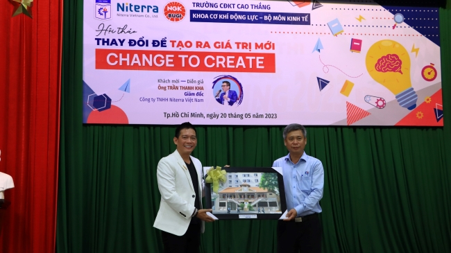 Thứ 7 ngày 20/05/2023 vừa qua, Trong khuôn khổ các hoạt động cuộc thi Mini Car Racing - lần 7 - năm 2023, Trường Cao Đẳng Kỹ thuật Cao Thắng và Công ty TNHH Niterra Việt Nam tổ chức buổi Hội thảo chủ đề “Change to Create”.