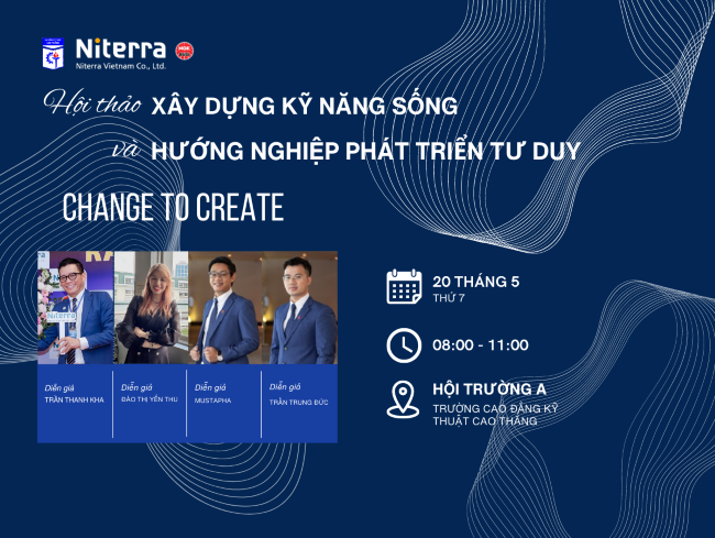 HỘI THẢO XÂY DỰNG KỸ NĂNG SỐNG, HƯỚNG NGHIỆP VÀ PHÁT TRIỂN TƯ DUY "CHANGE TO CREATE - Thay đổi để tạo ra giá trị mới"