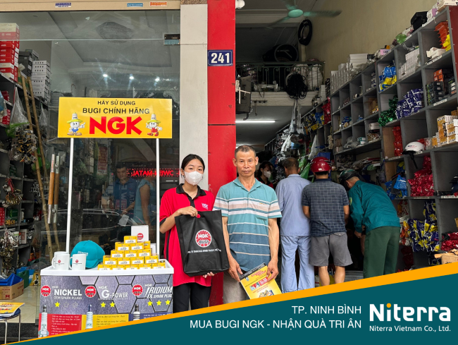 Ngày 21/07/2023 vừa qua, Niterra Việt Nam đã có mặt tại Đại lý Bugi NGK chính hãng Sức Hiền (Địa chỉ: Số 241, đường Vân Giang, Thành phố Ninh Bình) tổ chức chương trình: Mua Bugi NGK, nhận quà tri ân. Sự kiện diễn ra nhận được sự đón nhận nhiệt tình của các khách hàng ghé thăm Đại lý.