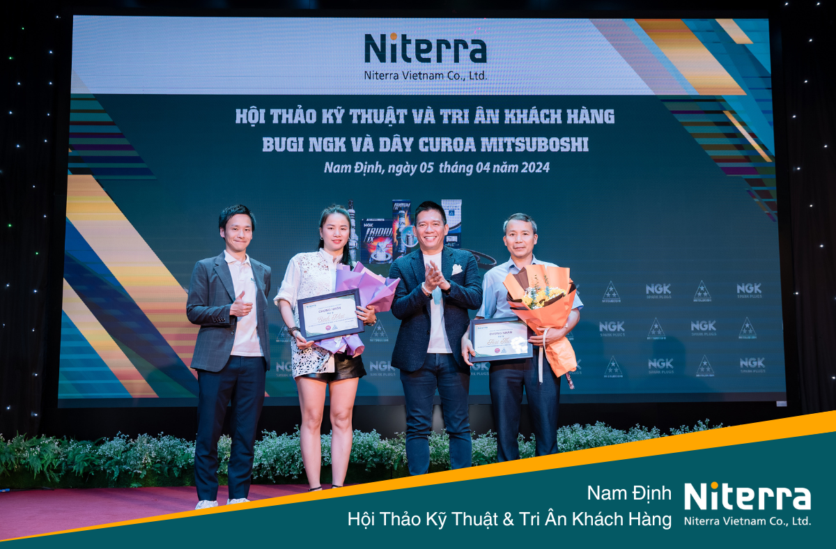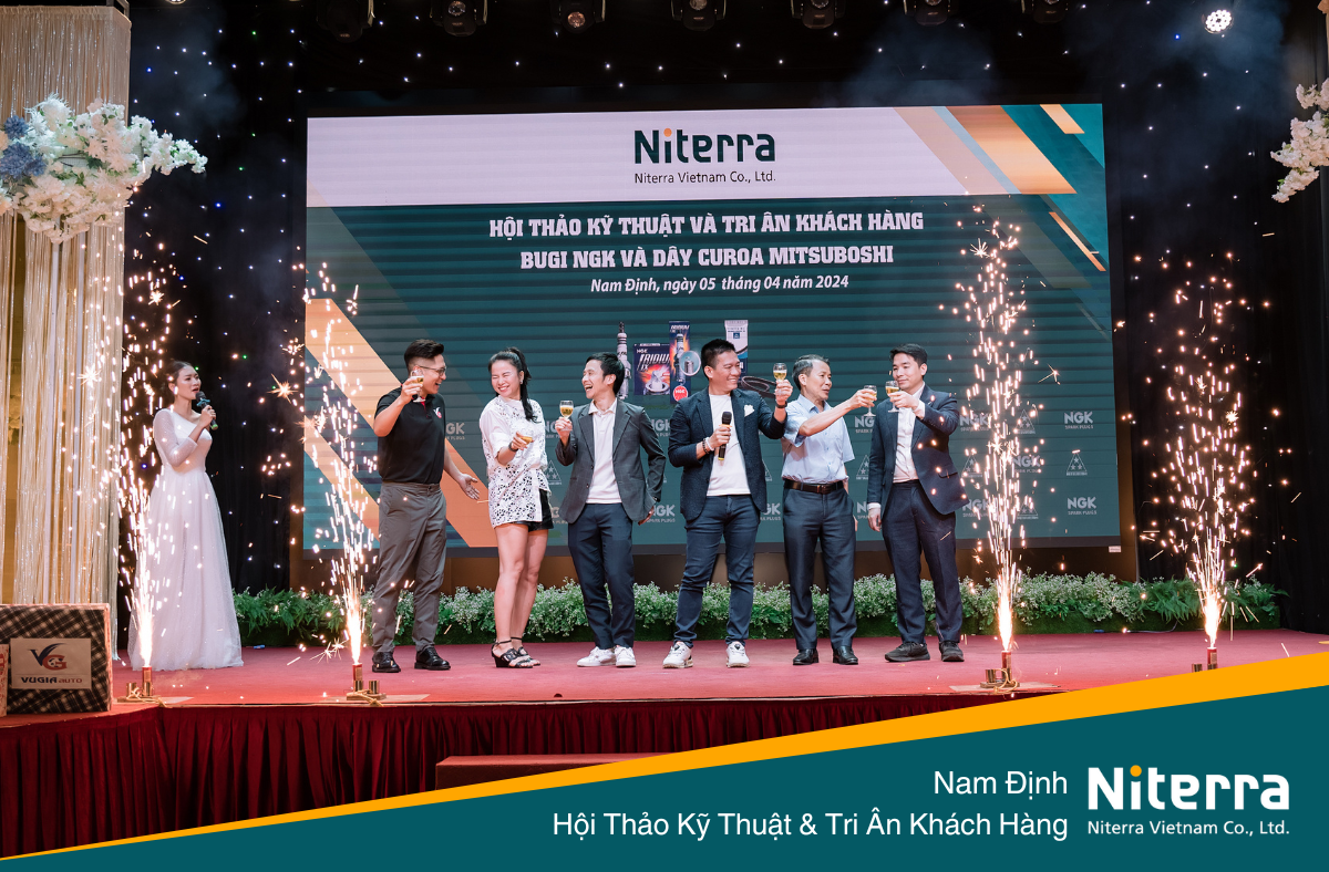Ngày 05/04/2024 vừa qua, Niterra Việt Nam đã có mặt tại tỉnh Nam Định để tổ chức hội thảo kỹ thuật cũng như Tri ân khách hàng về bugi NGK và dây curoa Mitsuboshi. Hội thảo có sự góp mặt của hai đại lý chính hãng Bình Mai và Hải Thoa, nhà phân phối Vũ Gia cùng với 140 khách hàng thân thiết của Niterra.