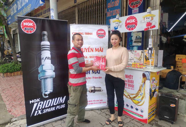 Chương trình nhận được sự đồng thuận và tương tác nhiệt tình trong khâu chuẩn bị lẫn khâu tư vấn, hỗ trợ khách hàng của chị Thủy – chủ Đại lý Bình Mai. Đây là Đại lý chính hãng của Bugi NGK, trực thuộc nhà phân phối Việt Tiến.