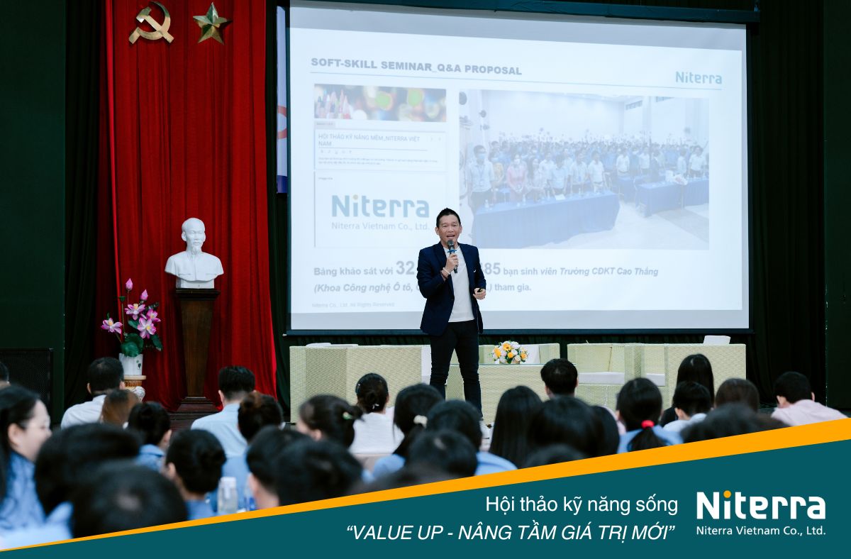 Ngày 04/05/2024, tại Trường Cao đẳng Kỹ thuật (CĐKT) Cao Thắng, trong khuôn khổ hợp tác và tài trợ cuộc thi Minicar Racing 2024 - lần thứ 8, giữa Công ty TNHH Niterra Việt Nam và Trường CĐKT Cao Thắng, Khoa Cơ Khí Động Lực phối hợp cùng Công ty tổ chức Hội thảo Xây dựng Kỹ năng sống, Hướng nghiệp và Phát triển tư duy, mang chủ đề “VALUE UP – NÂNG TẦM GIÁ TRỊ MỚI”.