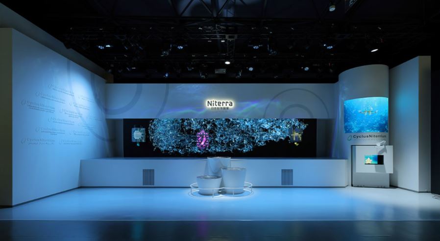 The exhibit demonstrates the functions of each device, allowing visitors to observe how water and air transform while highlighting the potential of Niterra's circular technology.