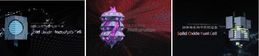 The exhibit will showcase three models of future circulation devices: (SOEC*1, Methanation*2, and SOFC*3). These models signify a transition from current prevalent stationary devices to a vision of mobile units.