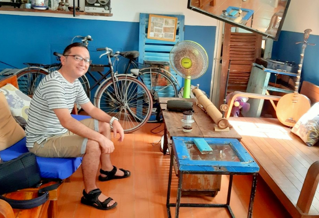 Before heading to the airport, the group stopped at Pan Khuc coffee – a small shop with a romantic, gentle and classic style. The space is quite old, items such as books, antiques are meticulously decorated. Besides fancy drinks with beautiful names, the owner is a multi-talented artist. Sitting sipping cool water, listening to the melodious flute, it seems that time seems to stop here...