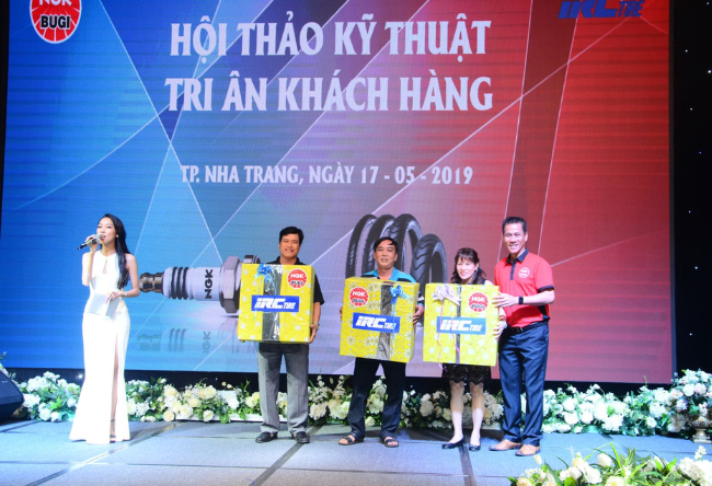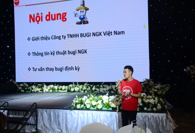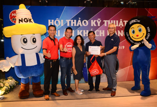 The program featured representatives of the two companies and major distributors of the two firms. On the side of NGK Spark Plugs, representatives of Uyen Khang and Hai Bang distributors personally attended. On top of that, the event gathered more than 130 guests who are spare parts shop owners and motorbike repairmen in Khanh Hoa province.