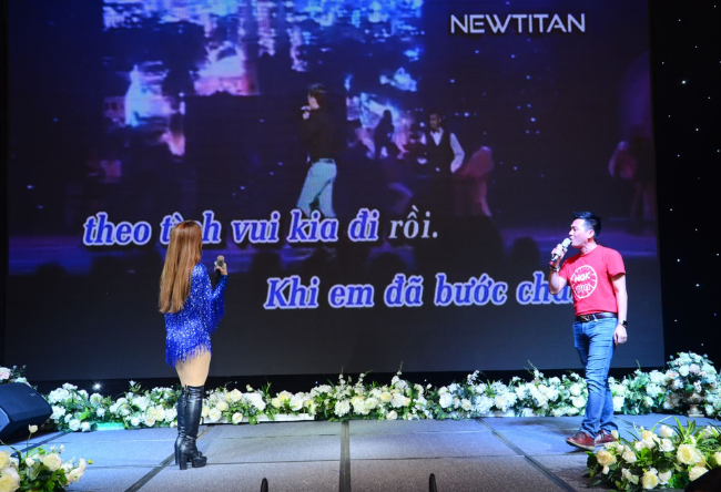 The banquet hall is decorated like a starry night sky. There are many dance and music performances from gentle to vibrant. On behalf of NGK, Mr. Tran Thanh Kha also contributed an emotional performance with the guest singer. The performances received warm praise from the audience. The atmosphere of the auditorium was stirred up after everyone had listened attentively to the presentation from the company's experts.