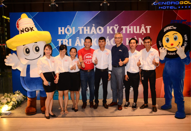 Mr. Truong Mai Hai Bang - Representative of NGK Distributor in Khanh Hoa - took souvenir photos with guests.