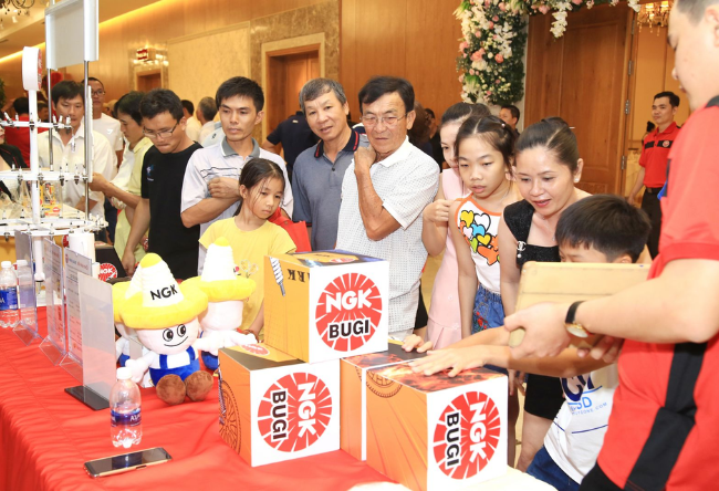 At the display counter of each company, NGK staff have just supported customers to play games, NGK experts and representatives of Uyen Khang distributors are also on hand to advise and answer customers about questions about products.