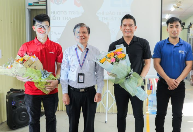 Mr. Tran Thanh Kha - Representative of NGK Spark Plug Company - presented to students.