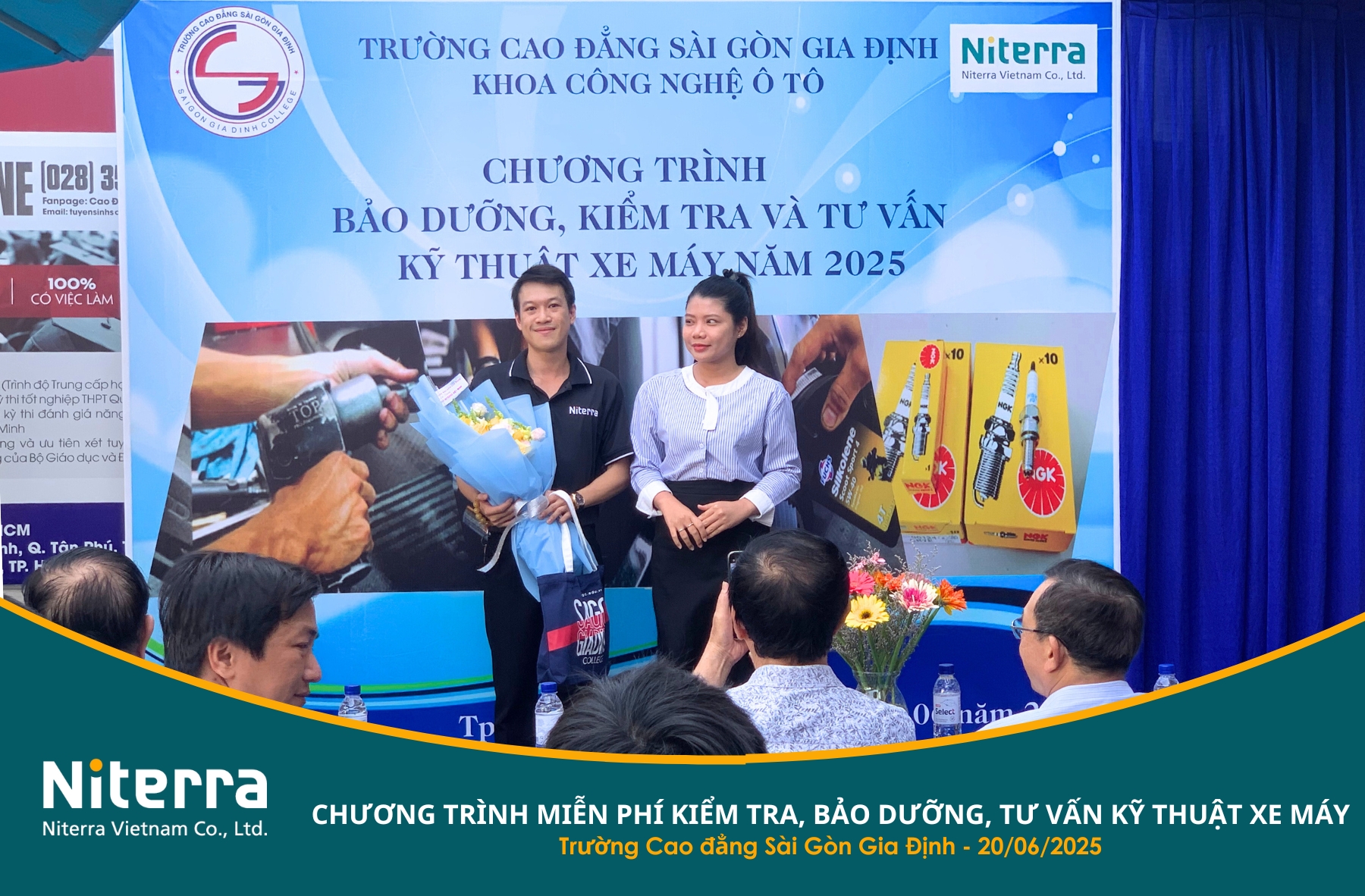 Đến với chương trình, Niterra Việt Nam tài trợ bugi NGK xe máy chính hãng và gửi tặng nhiều phần quà ý nghĩa dành cho cán bộ, giảng viên, nhân viên và sinh viên tham gia bảo dưỡng xe.