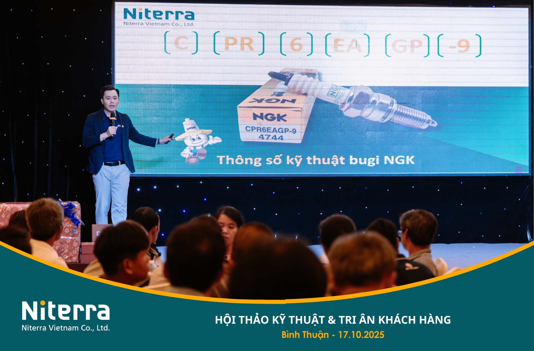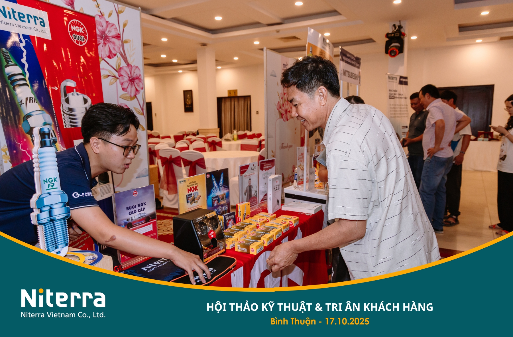 Ngày 17/10/2025, Hội thảo Kỹ thuật & Tri ân khách hàng đã được tổ chức thành công tại khu vực Bình Thuận (nay thuộc tỉnh Lâm Đồng). Sự kiện là dịp đặc biệt để Niterra Việt Nam cùng Nhà phân phối Uyên Khang, Công ty STD&S và Đại lý chính hãng Phúc Kim Thư gửi lời tri ân sâu sắc đến các khách hàng thân thiết đã luôn đồng hành trong suốt thời gian qua.