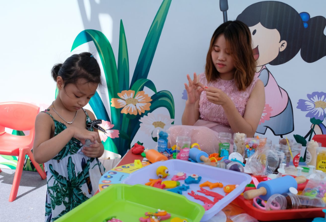 Motorbike Care Day 2019 gives customers many interesting gifts and the opportunity to receive more attractive rewards with puzzle games, throwing hoops.... at the display area of the firms. The organizers also set up a dedicated area for children called "Fairy Garden" so that parents can safely send their children while waiting for car maintenance.