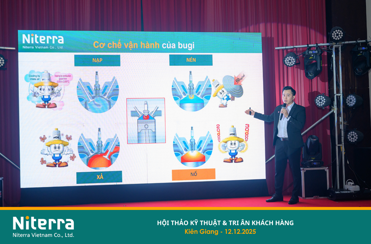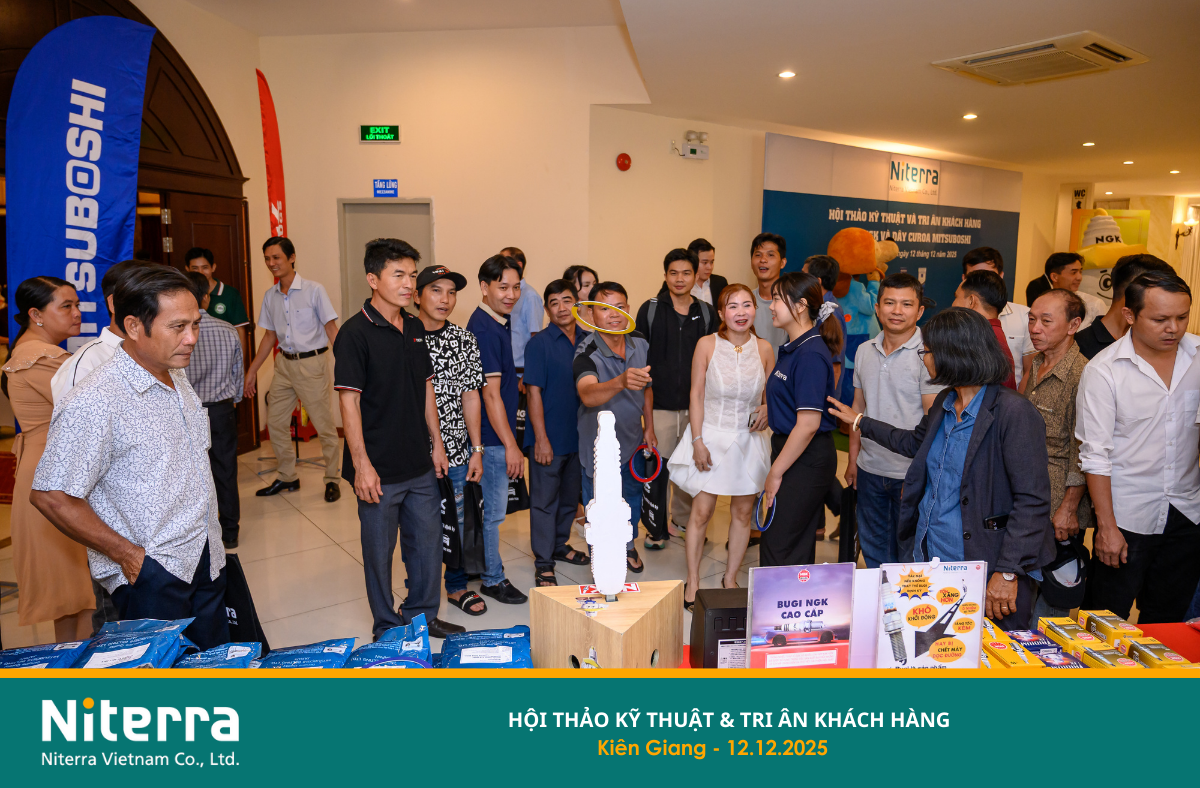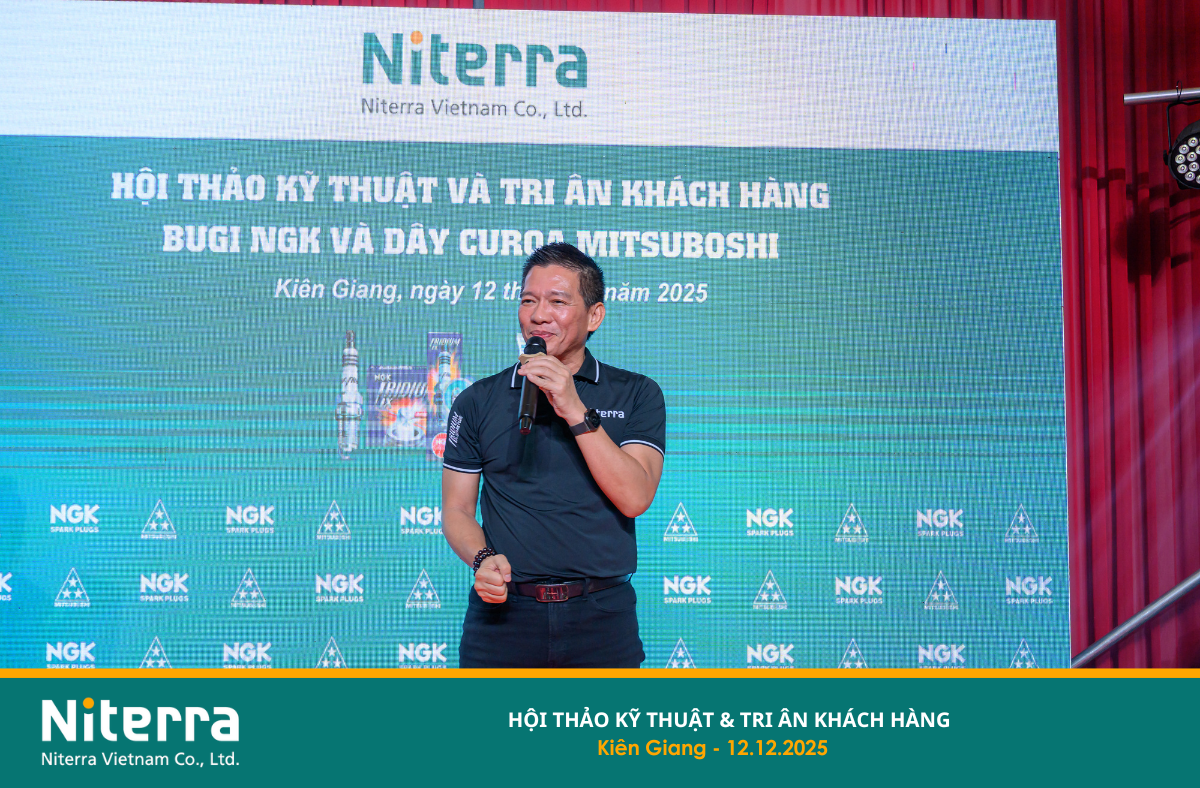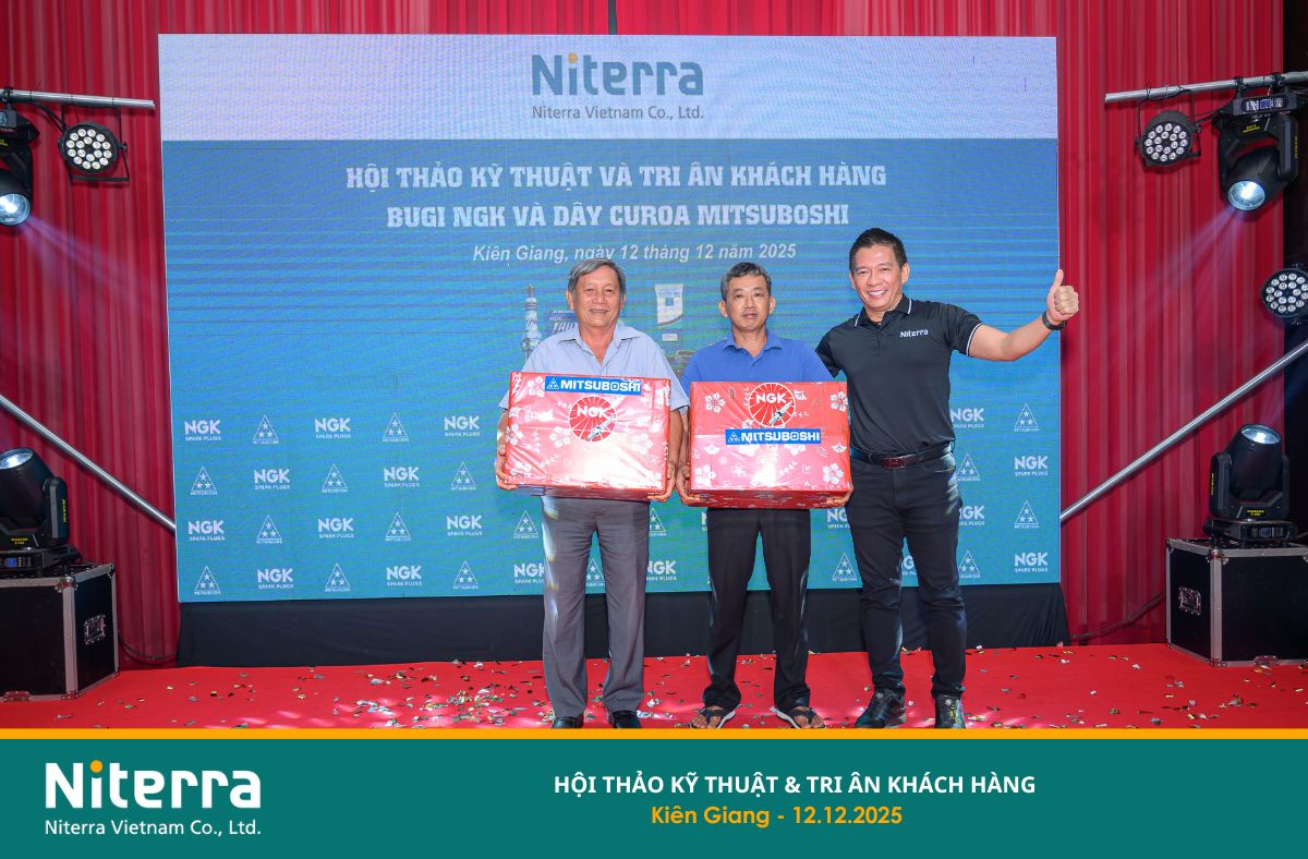 On December 12, 2025, Niterra Vietnam successfully organized the Technical Seminar & Customer Appreciation Event in the Kien Giang area (now part of An Giang Province). This special occasion provided an opportunity for Niterra Vietnam, together with Distributor Uyen Khang, STD&S Company, and Authorized Master Dealer Ma Tran Hung, to express sincere gratitude to valued customers who have continuously accompanied and supported the company over the years.