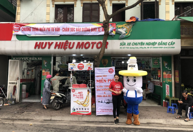 On 14th March, 2020; NGK Spark Plugs cooperated with Huy Hieu Motor Store - No. 1 Tran Quang Dieu, Dong Da District, Hanoi - to organize a free spark plug maintenance program for people around the area.