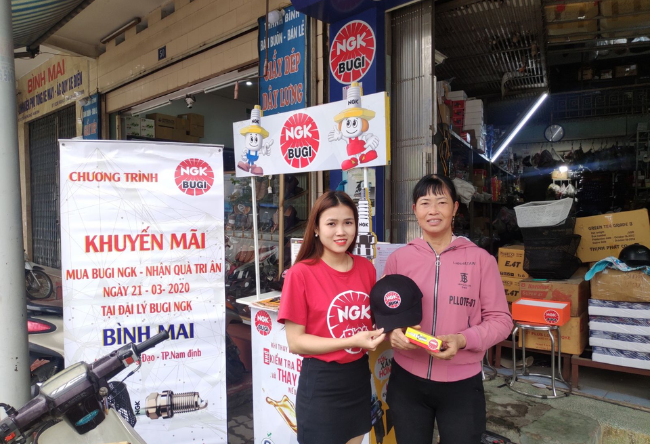 Over the weekend, NGK spark plugs organized a sales program to support Binh Mai Agent, located at 48 Tran Hung Dao, Nam Dinh City, through many attractive incentives only available on 21th March, 2020 such as: