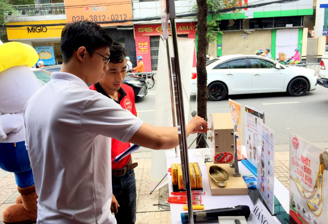 In addition to medical examination and car care, customers also enjoy playing a few simple games at the display counter of NGK spark plugs to receive lovely gifts. When leaving, the guest's car is not only well served, but the owner is also given a practical gift. This is also a way for NGK Spark Plugs to thank customers for trusting and using its products.