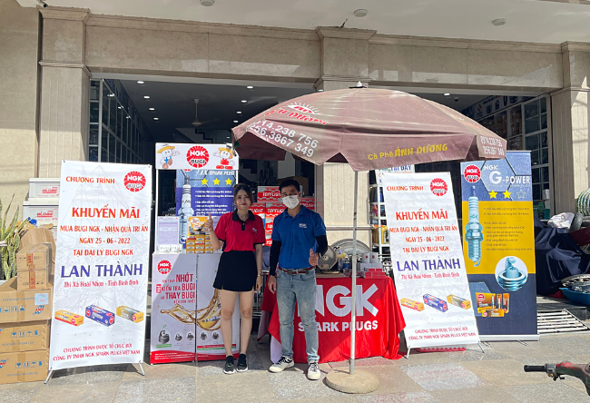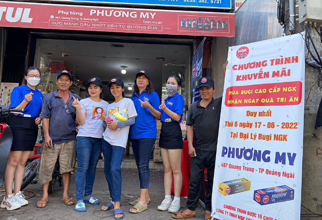 In June 2022, NGK Vietnam spark plug has implemented a series of agent support programs in the South Central provinces, such as Phuong My store (Quang Ngai) and Lan Thanh store (Binh Dinh). As usual, NGK Company offers the only promotion of the day for spark plug buyers when visiting NGK dealers.