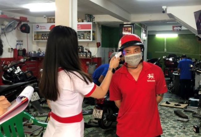 To ensure compliance with the 5K regulation, NGK staff and store staff have carefully prepared new electronic thermometers, masks, hand sanitizer, disinfectant spray, gloves... serving guests in and out and protecting themselves.