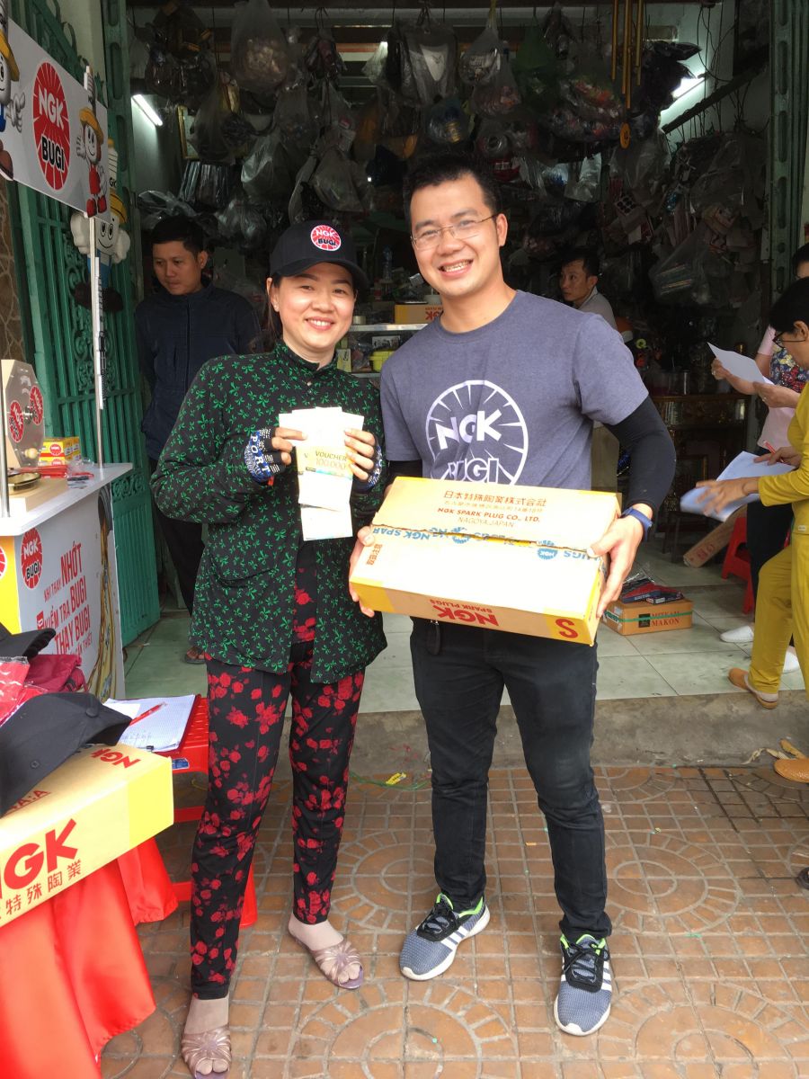 Cuong store has been with NGK for more than 25 years. The shop is a place that sells 100% NGK brand spark plugs with an average sales of 3,000 spark plugs per month.