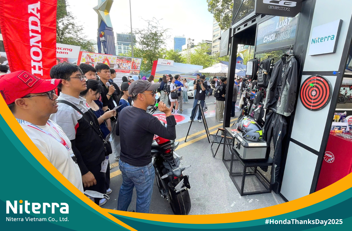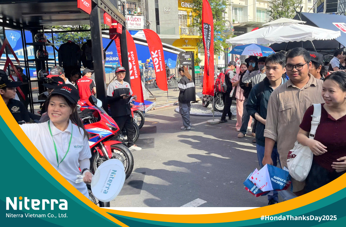 On December 13–14, 2025, Niterra Vietnam took part in Honda Vietnam’s meaningful year-end event — Honda Thanks Day 2025 — held on Le Loi Boulevard (Ho Chi Minh City). The event delivered a series of emotional, multi-sensory experiences amid the city’s vibrant rhythm. Accompanying the Organizing Committee, Niterra Vietnam helped heat up the atmosphere with a wide range of engaging and diverse activities.