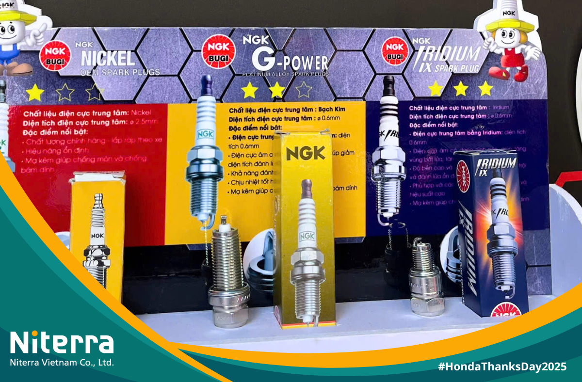 At the exhibition area, Niterra Vietnam showcased premium NGK spark plugs with renowned Japanese quality. The products were attractively displayed alongside detailed technical information, helping visitors better understand the differences among NGK spark plug lines.