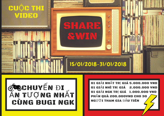 On the occasion of Lunar New Year 2018, NGK Vietnam jubilantly organized the contest "Share and Win – Season 1 Experience Journey" from 12th January, 2018 to 31th January, 2018. This contest promises to be a great opportunity for you to share your stories and wishes as well as show your creativity without borders. Quickly submit videos/clips and win attractive prizes from NGK Vietnam spark plugs!