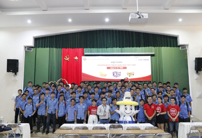 On the morning of 10th January, 2020; NGK Spark Plug specialists were present at Hall A, Cao Thang Technical College to organize an information exchange and share technical knowledge about spark plugs for 200 students of the Faculty of Dynamic Engineering of the school.