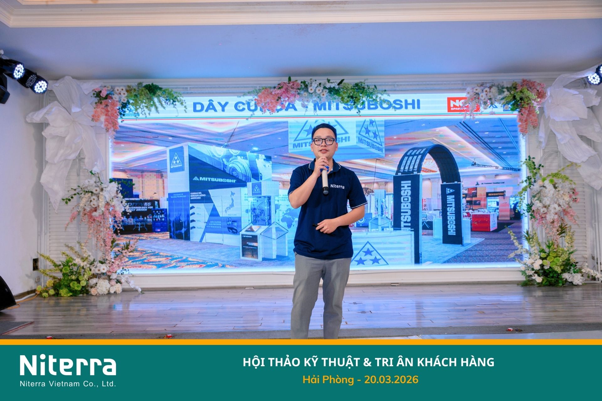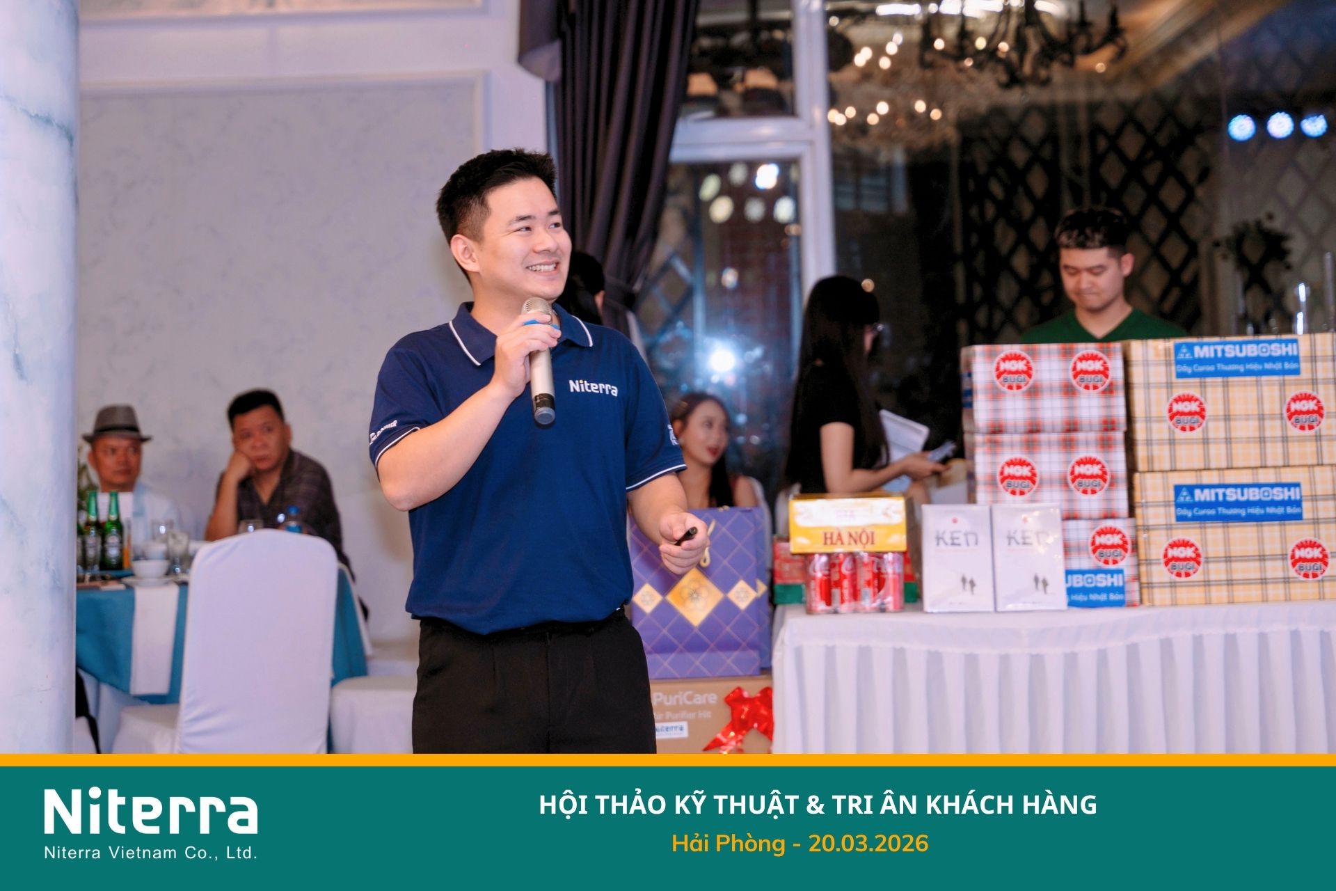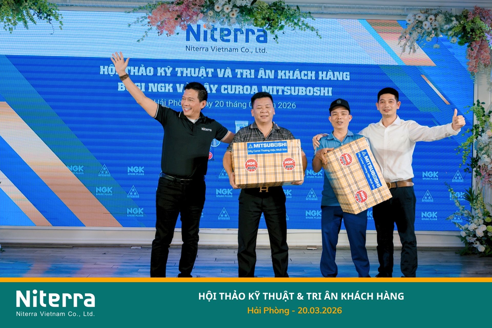 Ngày 20/03/2026 vừa qua, ngọn lửa nhiệt huyết của Niterra đã chính thức được thắp lên tại “Thành phố Cảng” Hải Phòng, trong khuôn khổ chuỗi sự kiện “Hội thảo Kỹ thuật & Tri ân Khách hàng”. Buổi hội thảo đã diễn ra trong không khí vô cùng sôi động với sự góp mặt của NPP Vũ Gia, Đại lý B.O.C và hơn 130 khách hàng thân thiết, những người đã góp phần quan trọng tạo nên sức mạnh của Niterra Việt Nam hiện nay.