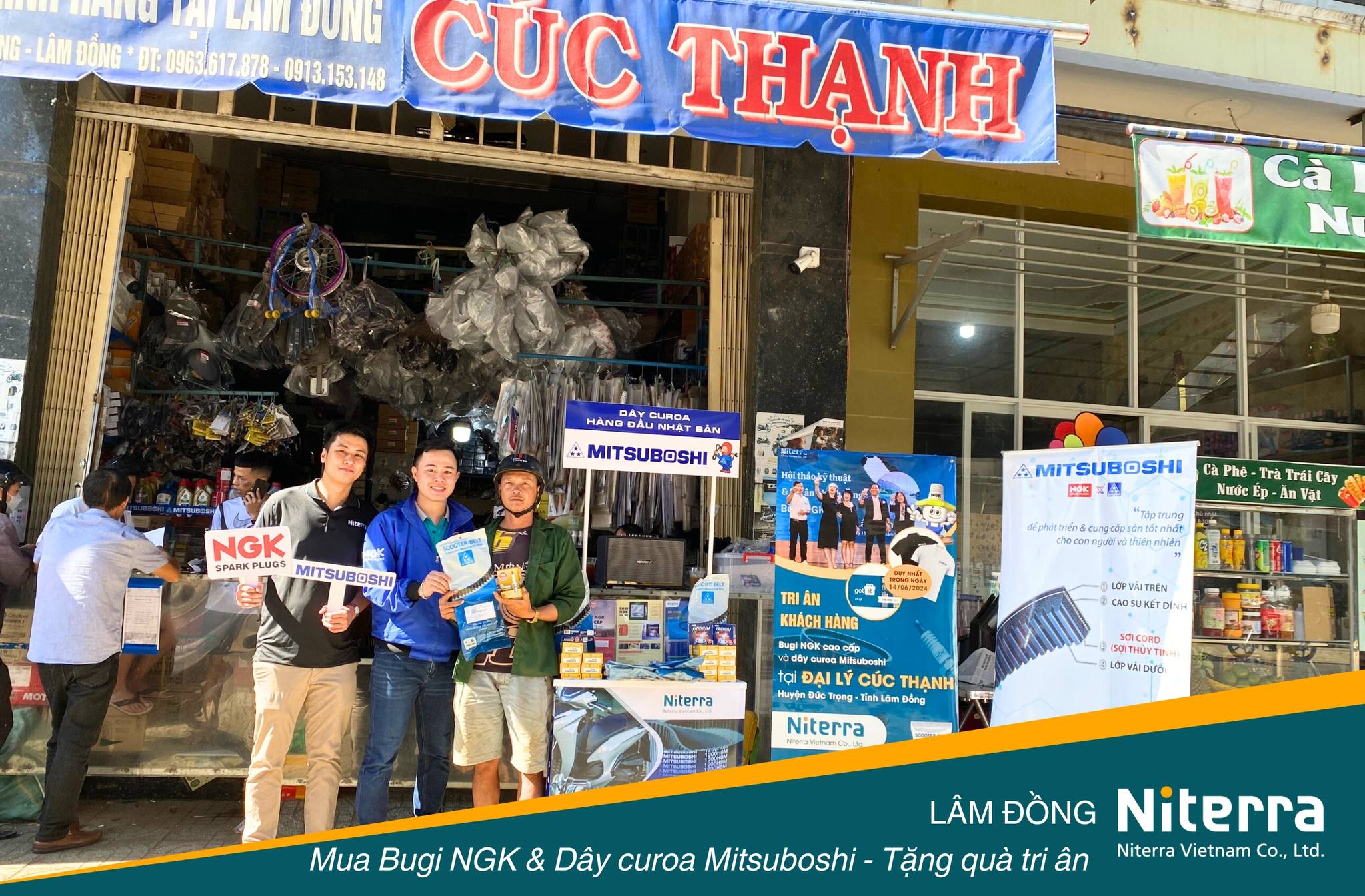 Vào ngày 14/06/2024, Niterra Việt Nam triển khai Chương trình Tri ân khách hàng đặc biệt, duy nhất trong ngày tại Đại lý Cúc Thạnh, huyện Đức Trọng, tỉnh Lâm Đồng, dành cho khách hàng mua bugi NGK cao cấp (bạch kim, iridium) và dây curoa Mitsuboshi.