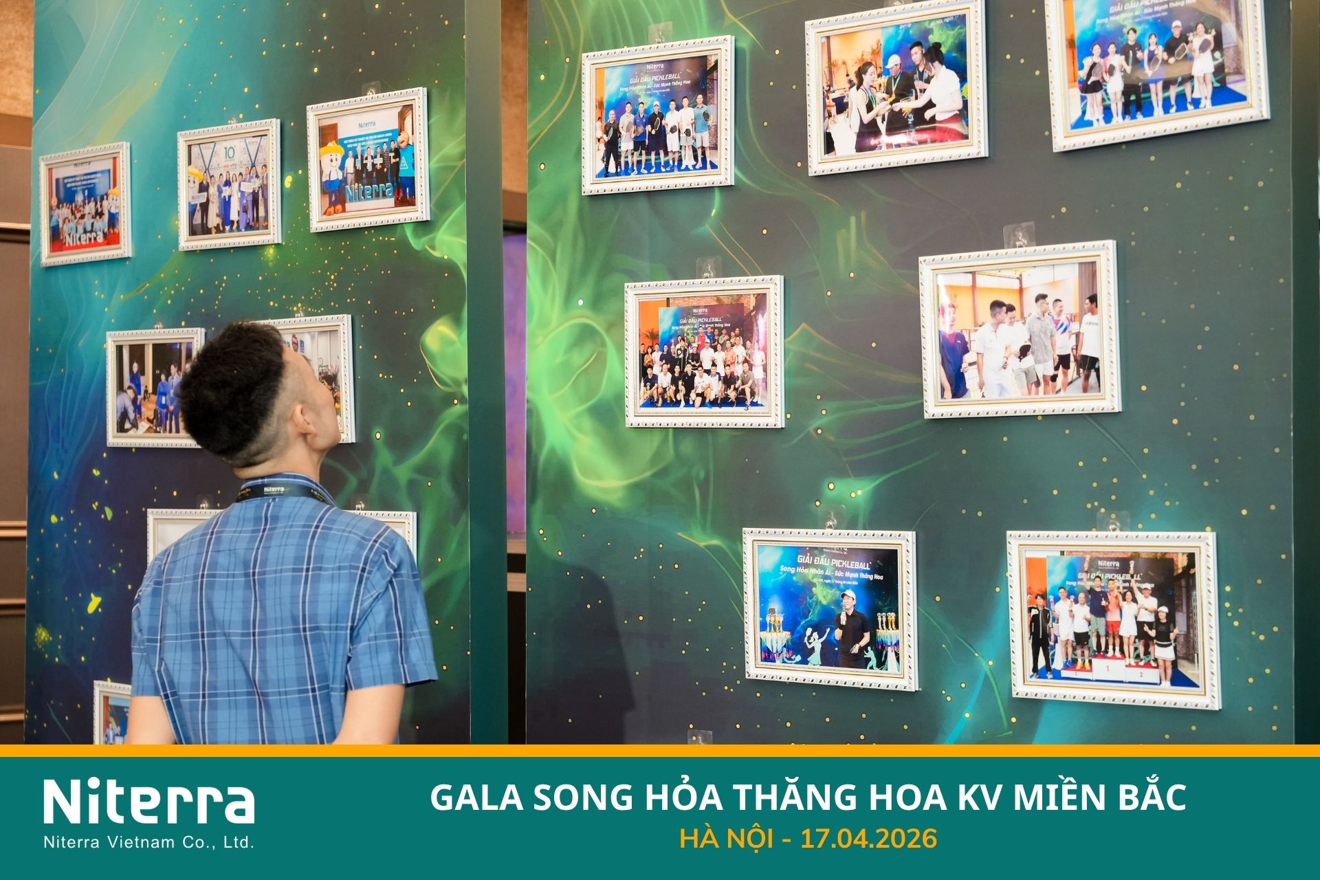 Đặc biệt nhất chính là khu vực "Bức tường thời gian" – nơi treo những bức ảnh lưu giữ hành trình đáng nhớ giữa Niterra và Quý đối tác. Đặc biệt, khu vực này còn được điểm xuyết bằng những khung hình nóng hổi vừa được chụp tại giải đấu Pickleball Song Hỏa Nhân Ái diễn ra vào buổi sáng cùng ngày. Từng khoảnh khắc tại sự kiện đều trở thành một mảnh ghép của ngọn lửa chung rực cháy tạo nên dấu ấn khó quên trên hành trình thăng hoa phía trước.