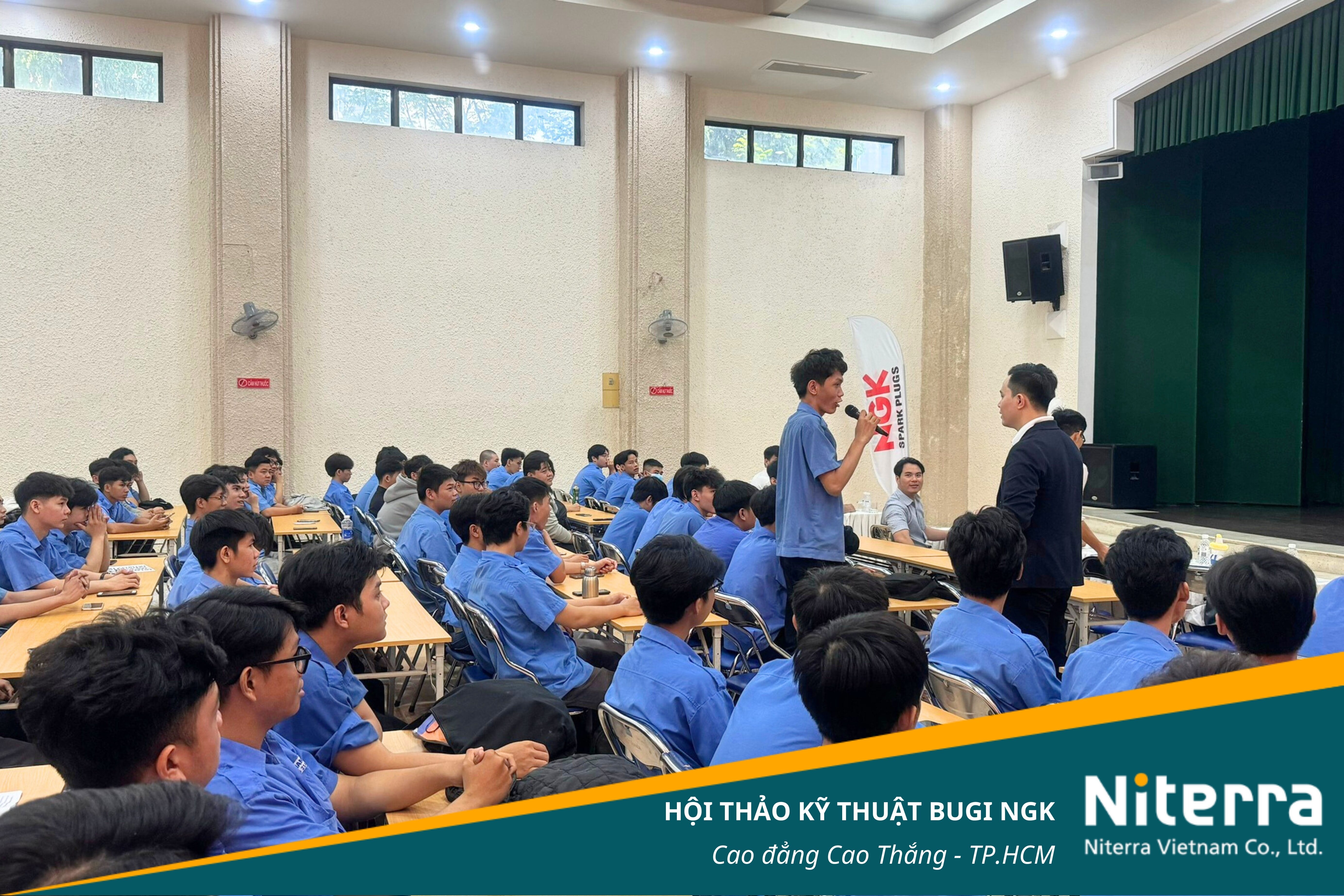 Sáng ngày 13/4/2024, tại Hội trường A, trường CĐKT Cao Thắng đã diễn ra buổi Hội thảo kỹ thuật về Bugi NGK do Công ty Niterra Việt Nam và Khoa Cơ Khí Động Lực của Trường phối hợp tổ chức, cùng với sự hiện diện của hơn 200 sinh viên chuyên ngành ô tô, sinh viên các khoa trong trường và các đội thi Mini Car thuộc 10 trường cao đẳng - đại học ở khu vực các tỉnh miền Nam.