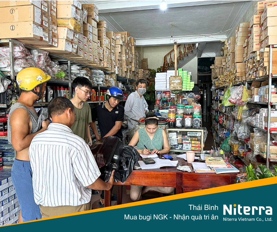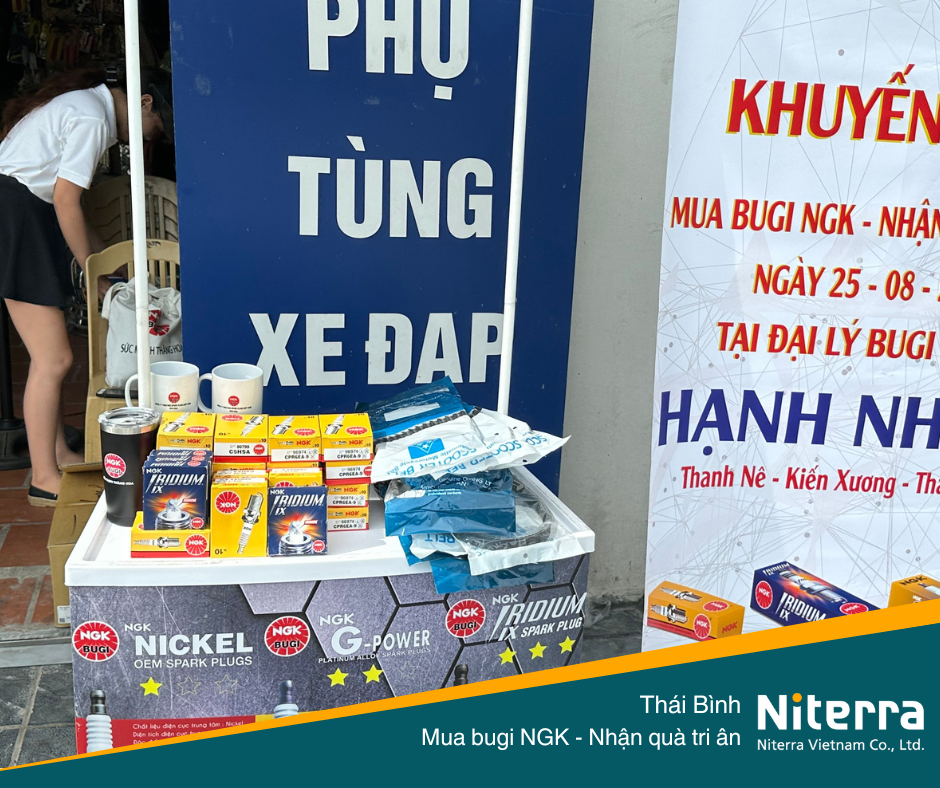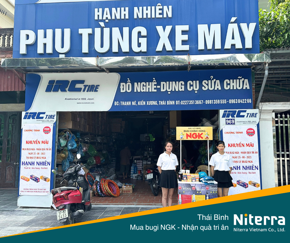Ngày 25/08/2023, Niterra Việt Nam có dịp ghé thăm cửa hàng phụ tùng xe máy Hạnh Nhiên tại Thái Bình để tổ chức chương trình khuyến mãi dành cho khách hàng mua bugi NGK. Sự kiện này đã thu hút đông đảo khách hàng nơi đây đến tham gia và ủng hộ.